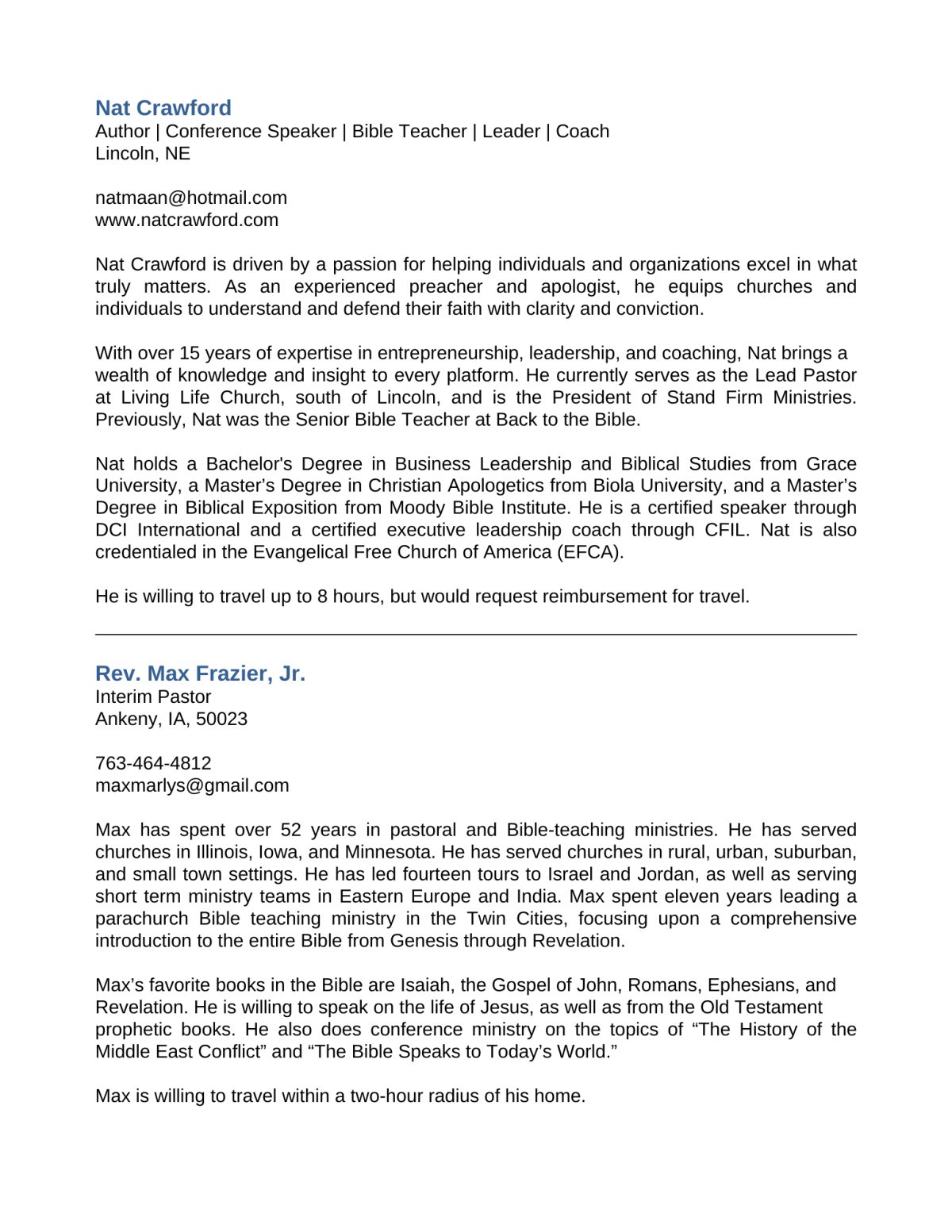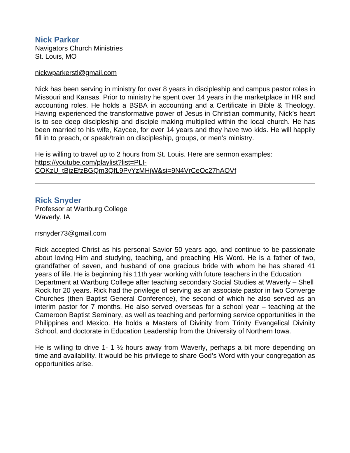 Would you like to be added to the Pulpit Supply list? Contact Jamie Farran at